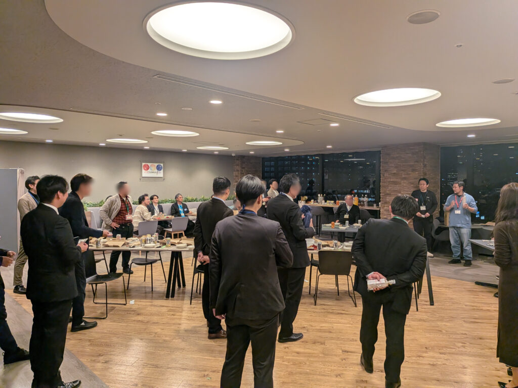 お酒と軽食が準備された交流会となり、会場にはお酒や軽食が用意され、それまでの真剣な議論から一転、リラックスしたムードに。