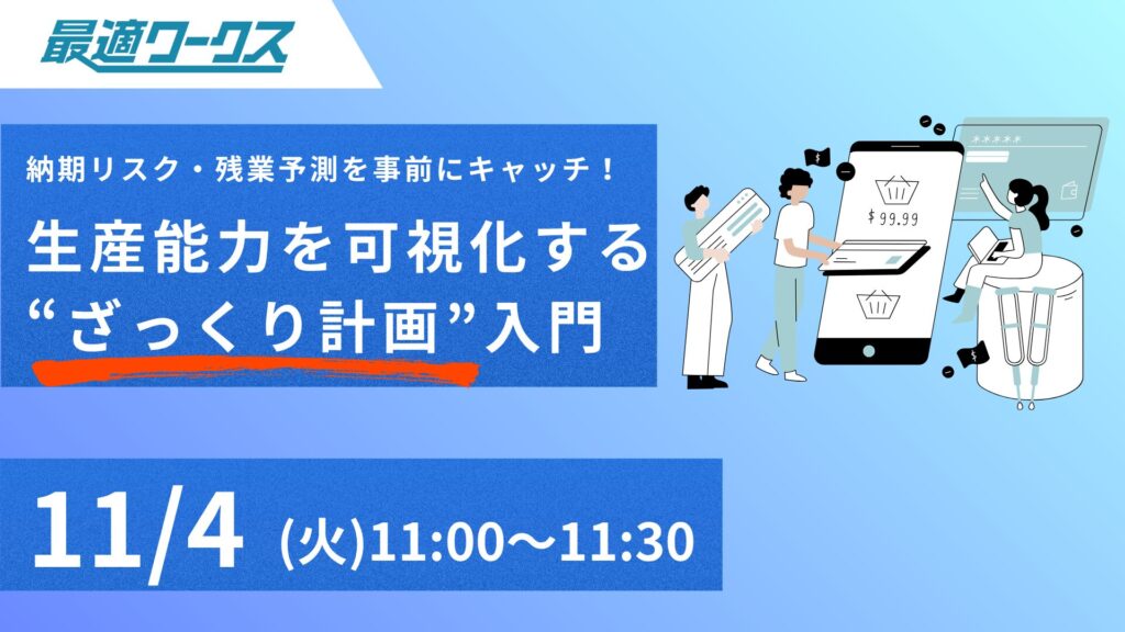 本ウェビナーでは、そうした属人化から脱却し、生産能力を“ざっくり”でも数値で把握できる仕組みをつくるための実践ステップを紹介します。