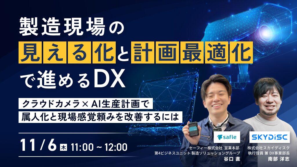 【セーフィー × スカイディスク】製造現場の“見える化”と“計画最適化”で進めるDX 〜クラウドカメラ×AI生産計画で属人化と現場感覚頼みを改善するには〜